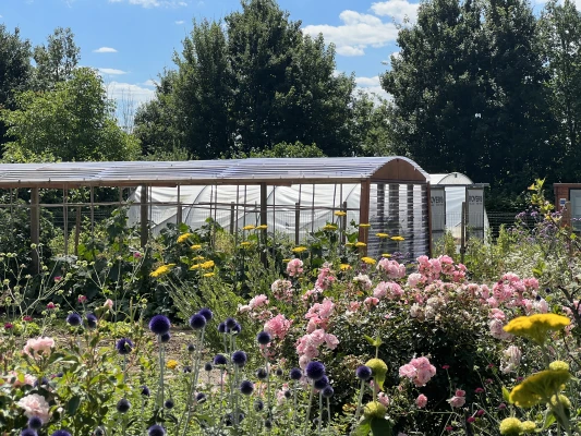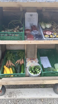 Mooie moestuin gerund door vrijwilligers. Een verkoopkar voor de deur met biologische producten, met in het seizoen heerlijke honing. De moeite waard om een keer een bezoekje te brengen.