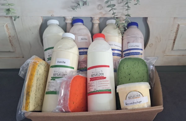 Wij verkopen verse zuivel gemaakt van de melk van koeien van ons eigen bedrijf. Ook maken wij Biesvelder Grillkaas.