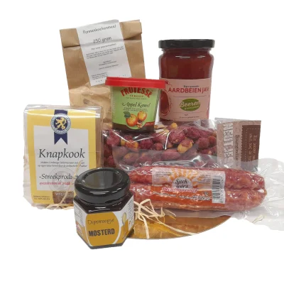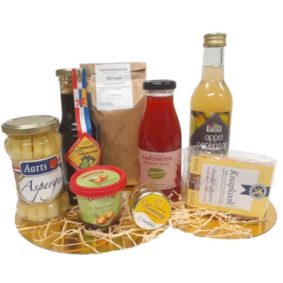 We hebben diverse standaard Cadeau pakketten/ lokale streekpakketten in onze Boerderij verkoop automaat liggen. Maar we maken ook streekproductenpakketten naar de wens van U als klant op maat en budget.