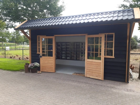 Wij zijn een pluimveehouderij en een kalverenhouderij in Barneveld. Ons bedrijf ligt aan de doorgaande weg de N801 van Barneveld naar Wekerom. Circa 3 kilometer buiten Barneveld. Hoe kan het ook anders dan verse eieren verkopen in het echte kippendorp Barneveld. Wij verkopen als sinds 2005 onze eigen bruine vrije uitloopeieren aan de weg. Eerst vanuit een klein houten hokje maar sinds 2015 via een boerderij automaat, daarin verkopen we ook aardappels zowel voor koken als ook voor zelf patat maken. Sinds december 2020 verkopen wij ook rosékalfsvlees.