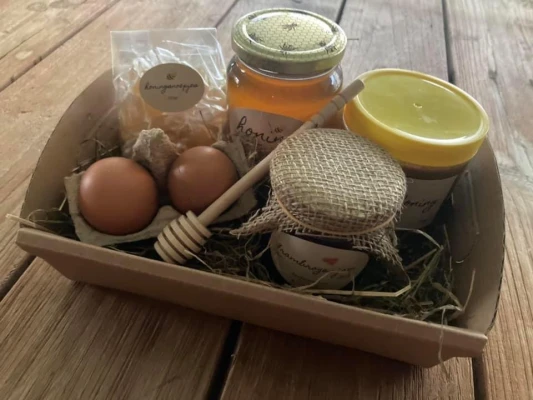 Ook verkopen we verse scharreleieren , div.soorten jam,honingsnoepjes en propolis.