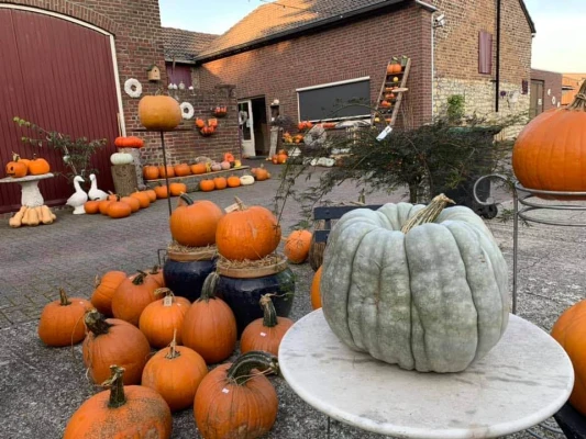 In oktober verkopen wij violen uit de volle grond en staan we bekkend als PompoenBoerderij Mertens. Wij verkopen een breed aanbod pompoenen, van grote Halloween pompoenen tot eetpompoenen.