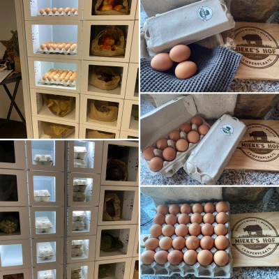 Mieke’s Hof is een moderne boerderijwinkel waar alles in automaten zit en via een koopzuil gekocht kan worden en betaalmiddel alleen met de pin. We hebben eigen rundvlees en verse melk van onze eigen koeien. Ook heerlijk boerensoftijs die u zelf kunt tappen. Daarnaast hebben we locale streekproducten zoals zuivel, eieren, seizoensgebonden groenten en fruit, aardappelen en delicatessen sappen, zelfs vers geperst sinaasappelsap. Asperges en aardbeien. En honing van de bijen die achter op ons vele staan. Ook kant en klare producten in ons assortiment. Ook hebben we een prachtige camperplaats aangelegd. Kom eens een kijkje nemen u bent van harte welkom op Mieke’s Hof.