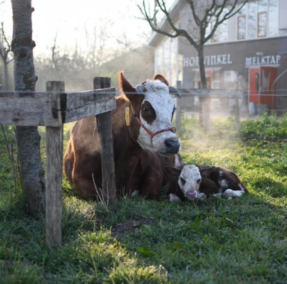 Onze kaas, groenten, aardappelen en vlees zijn afkomstig van eigen hof. Tap zelf je melk uit onze eigen melktap.