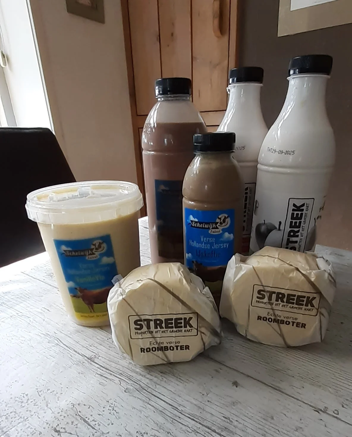 Daarnaast hebben we ook zuivel in de automaat, oa. drinkyoghurt, roomboter, chocolademelk, karnemelk, ijskoffie, vanillevla, en diverse soorten pap en verse scharreleieren.
