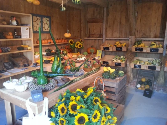 Voor Halloween hebben we vanzelfsprekend diverse soorten beschikbaar om uit te hollen. Naast verse eetpompoenen, verkopen we ook pompoensoep en pompoenjam. Naast pompoenen telen we ook artisjokken, zowel voor consumptie als voor decoratie.
