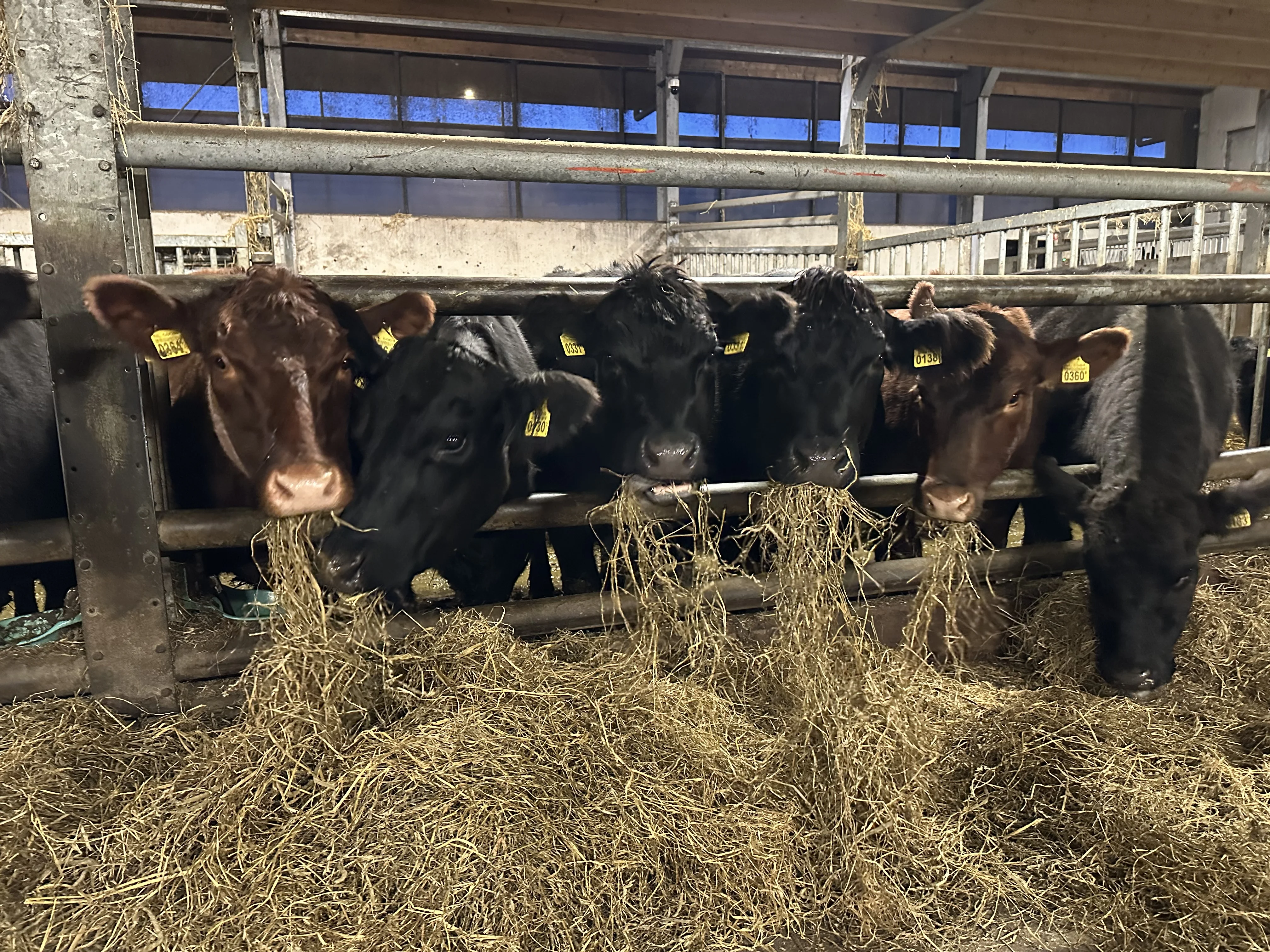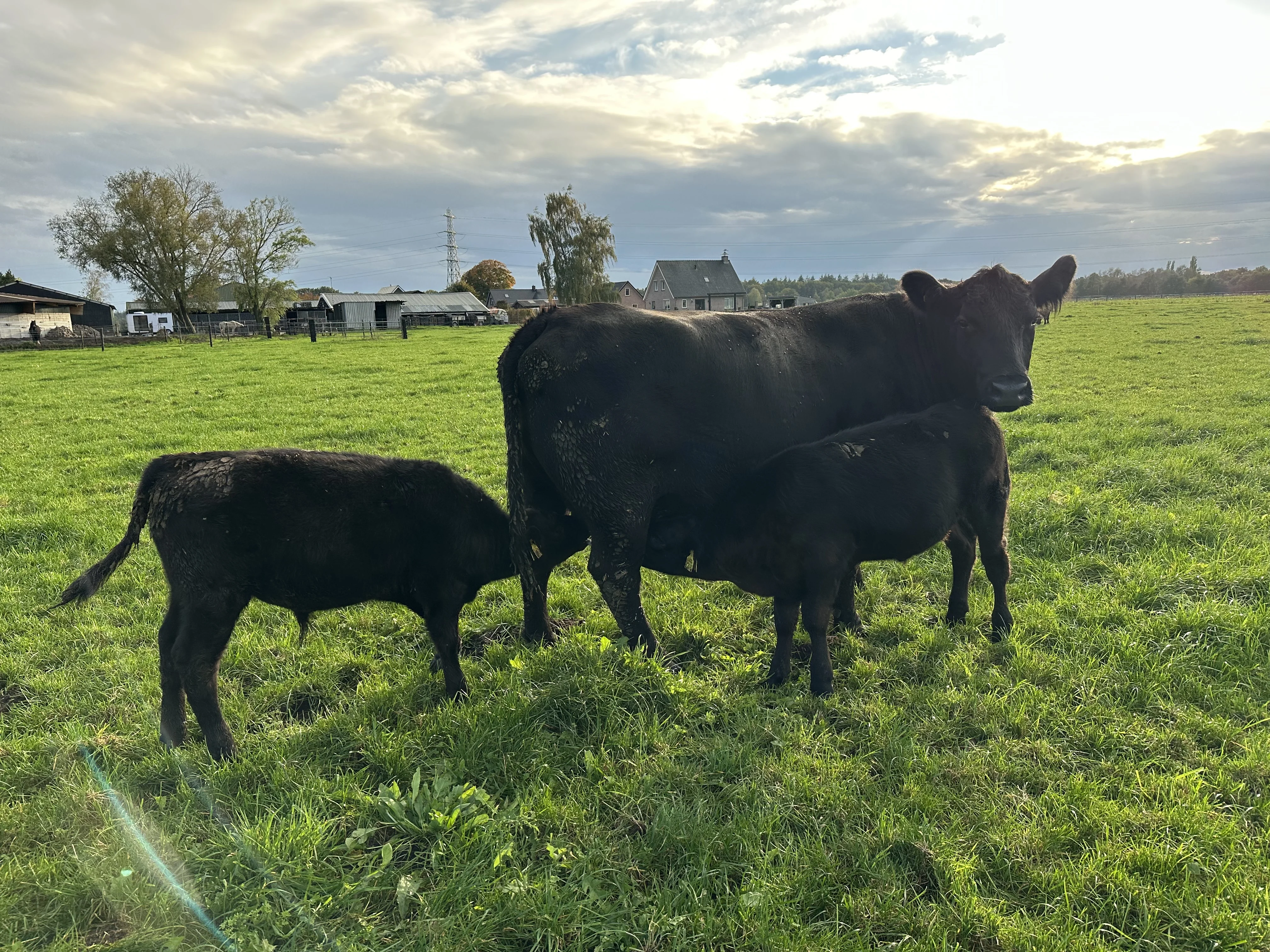 Wij hebben Black Angus koeien waarvan het kalfje zo lang mogelijk bij de koe blijft en die zolang het weer het toe laat lekker buiten verblijven. Wanneer ze op stal gaan lopen ze in hele ruime strohokken. Hun welzijn is voor ons belangrijk! Wilt u eens een kijkje nemen, wij heten u van harte welkom!
