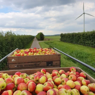 Wij verkopen appels, peren, aardappels, uien, eieren en appelsap.
