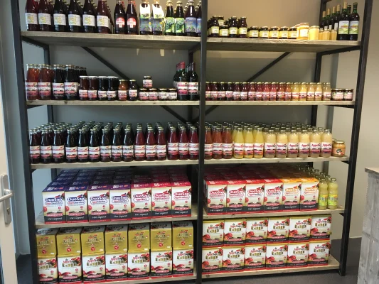 Hier verkopen wij de producten die wij zelf telen; Kersen, appels, pruimen en peren. Daarnaast verwerken wij fruit tot pure sappen. Daarnaast verkopen wij veel Groningse producten. Hartelijk welkom van maandag t/m zaterdag. In de stad Groningen hebben wij ook een winkel met onze producten. Locatie: Overwinningsplein 75 te Groningen.