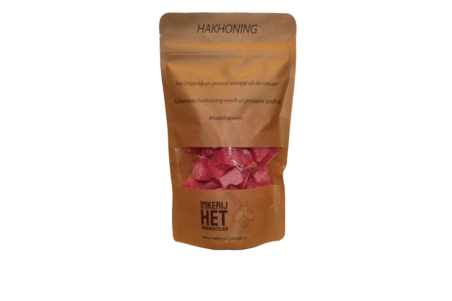 Hakhoning is een eeuwenoud product met een geheim recept. In de middeleeuwen werd het als hulpmiddel gebruikt bij verkoudheid, hoesten, keelpijn, keelontsteking en allerlei andere luchtweg aandoeningen. Tegenwoordig verstaan we het als snoepgoed. Onze hakhoning wordt ambachtelijk gemaakt met zuivere bijenhoning van lokale imkers. Verder gebruiken we 100% natuurlijke kruiden!Geen allergenen of conserveermiddelen of andere kunstmatige toevoegingen.