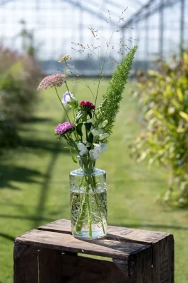 Bestel eenvoudig losse vaasjes met vrolijke, lokaal geteelde bloemen voor jouw evenement. Met een aantal vaasjes op de tafel is jouw evenement direct fleurig aangekleed!