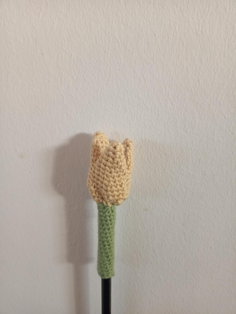 Handgemaakte, gehaakte tulp, voor versiering van je potlood.