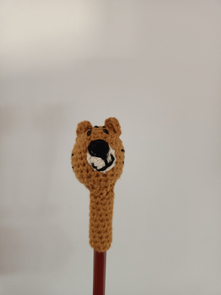 Handgemaakte, gehaakte tijger, voor versiering van je potlood.