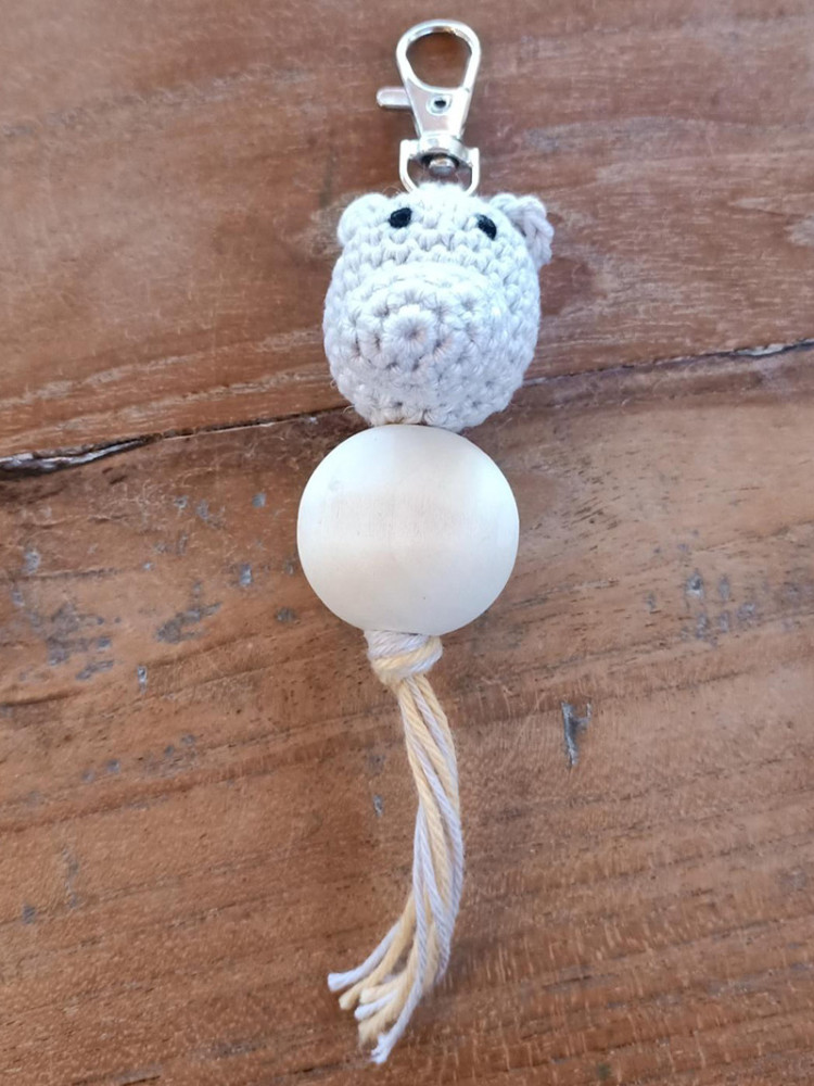 Handgemaakt, gehaakt nijlpaardje, voor een beetje geluk aan je sleutelhanger.