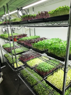 Microgroenten worden in een vroeg stadium geoogst en kunnen direct gebruikt worden voor consumptie. Ze hebben dan net hun zaadlobben ontwikkeld. Ze worden vergeleken met kiemgroenten, het verschil is dat er bij de microgroenten wel licht aan te pas komt en bij kiemgroenten niet.