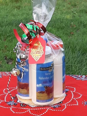 Wij verkopen allerhande zuivel gemaakt van onze Jerseymelk. Deze melk bevat 20% meer proteïne dan de gangbare koemelk. Het bevat extra Omega 3 en er zit minimaal 6% vet in waardoor het een romige en volle smaak geeft. Onze koeien lopen, met uitzondering van de wintermaanden, iedere dag in de wei.