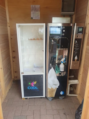 Aan de straat staat een softijsmachine waarbij je zelf je boeren softijsje kan tappen.