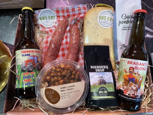 Gevuld met (h)eerlijke streekproducten en delicatessen. Foto is ter illustratie. Bij voorkeuren wat betreft de inhoud horen we dit graag tijdig.