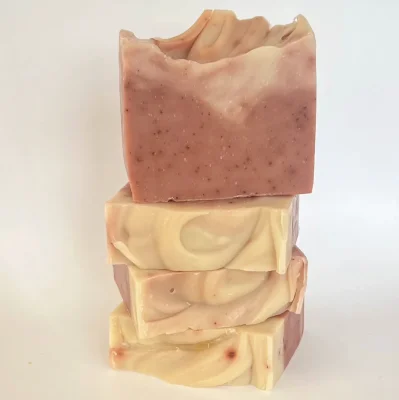 Met zijn dieprode tinten, afkomstig van rode klei en meekrapwortelpoeder, brengt deze zeep een natuurlijke schoonheid en een krachtige verzorging samen in één.