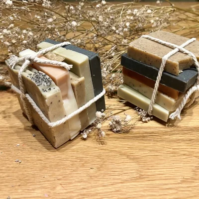- 5 zeepstukken: Een mix van onze geliefde geuren, perfect om iedere keer wat nieuws uit te proberen.