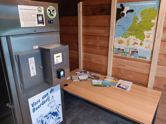 Bij 't Melkhuisje bent u van harte welkom voor verse weidemelk van onze eigen koeien. Daarnaast bieden wij verschillende streekproducten aan waaronder consumptie aardappelen, witte scharreleieren, uien, kaas, ijs en frietaardappelen. Op ons kleine terras kunt u heerlijk plaatsnemen met uitzicht op de koeien in de wei en de tulpen in het voorjaar. Of combineert u uw bezoek liever met een wandeling door het tegenover gelegen bos?