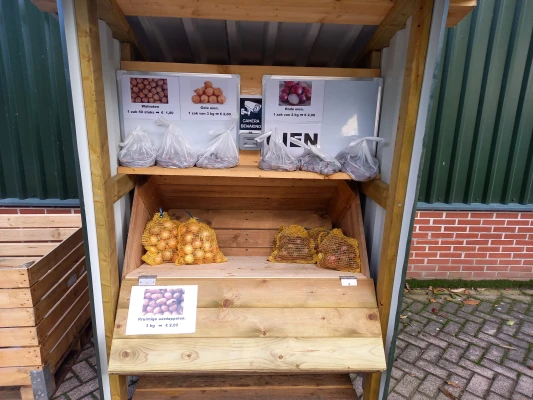 Vanaf dit jaar zijn we gestart met de verkoop van enkele van onze eigen geteelde producten. U kunt bij ons terecht voor rode en gele uien, aardappelen, verpakt in zakken van 2 en 3 kg.