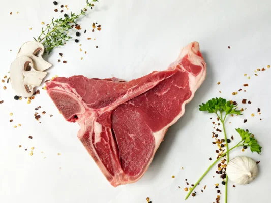 De T-bone steak... wie kent deze delicatesse niet? De T-Bone wordt gesneden van twee botermalse en smaalvolle vleessoorten (lende & de haas); daar heeft deze vleessoort haar overvolle smaak en malsheid aan te danken. Onze T-Bones kun je nu ook voor een hele mooie scherpe prijs op jouw eigen bord krijgen.