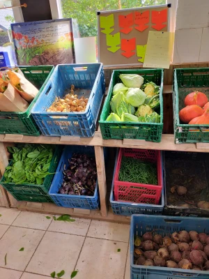 In onze winkel verkopen we onze eigen biologisch dynamische producten, diverse groenten en aardappelen en uien, vanaf Juli tot en met Maart is er het meeste aanbod. De maanden April tot Juni moeten onze groenten na het zaaien groeien. Verder verkopen we biologisch vlees op bestelling.Naast de biologisch dynamische teelt hebben we een zorg boerderij  waar 10 mensen met een beperking een fijne dag beleven. Plezier in het werk en het denken in mogelijkheden in plaats van beperkingen staat bij ons centraal.