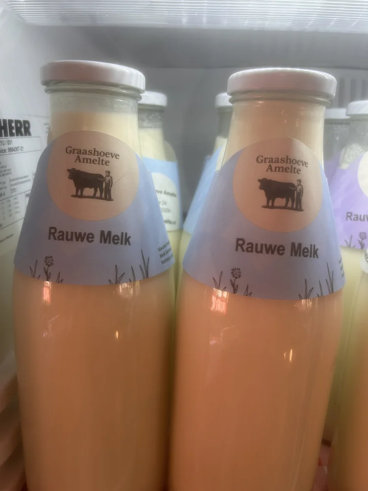 Verse rauwe melk van onze Jersey koe, fles 1 liter